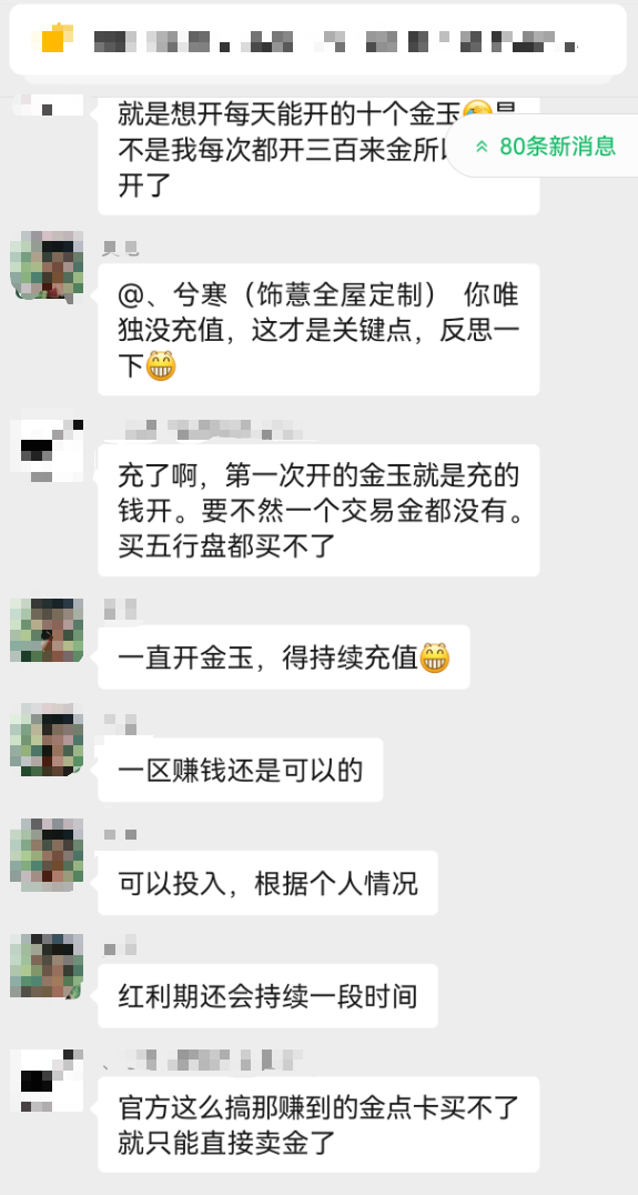 搬砖老司机也建议可以根据个人情况投入,红利期还是很赚的,就拿【梦回大荒】服务器来说,刚开区那会有玩家上线啥都不干,光买金玉开金币每天都能赚个百十块左右,回报率还是很高的。
