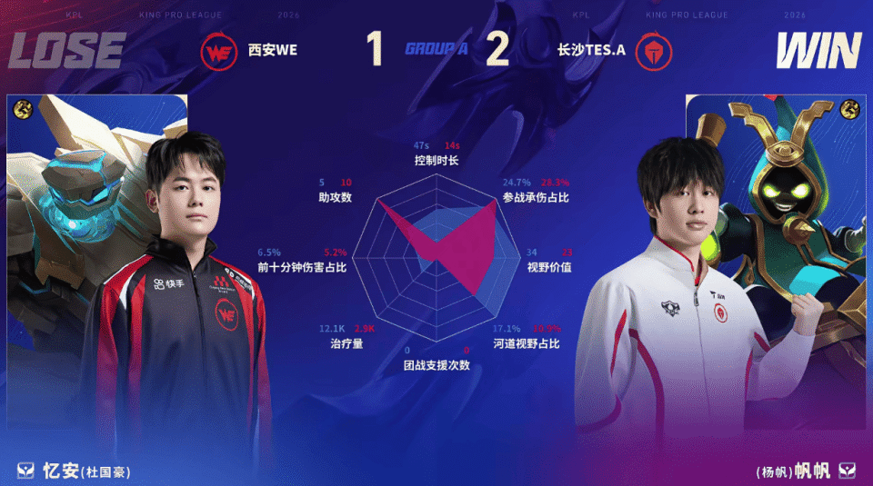 虎扑02月12日讯 TES.A/WE第三局数据对比:书源镜多数据领先子意杨戬