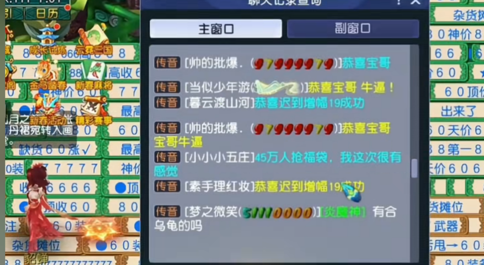 我的天,这就是旭旭宝宝的影响力啊!昨晚,宝哥终于成功增幅19武器,那一刻,整个龙拳和齐天大圣服务器的传音频道简直像炸开了锅,满屏都是祝贺的消息,密密麻麻连成一片,仿佛整个梦幻世界都在为他欢呼。隔着屏幕都能感受到那股狂热的氛围,连路过的玩家都忍不住停下脚步,跟着刷一句“宝哥牛X”。我不禁开始想象,如果哪天宝哥真的圆梦无级别,那一刻会是什么景象?怕是整个游戏都要沸腾了吧!是满屏传音刷到卡顿,还是无数玩家自发集结庆祝?光是想想就让人心跳加速。接下来,就看王姨能不能大发慈悲,帮宝哥圆了这个梦了——我们拭目以待!