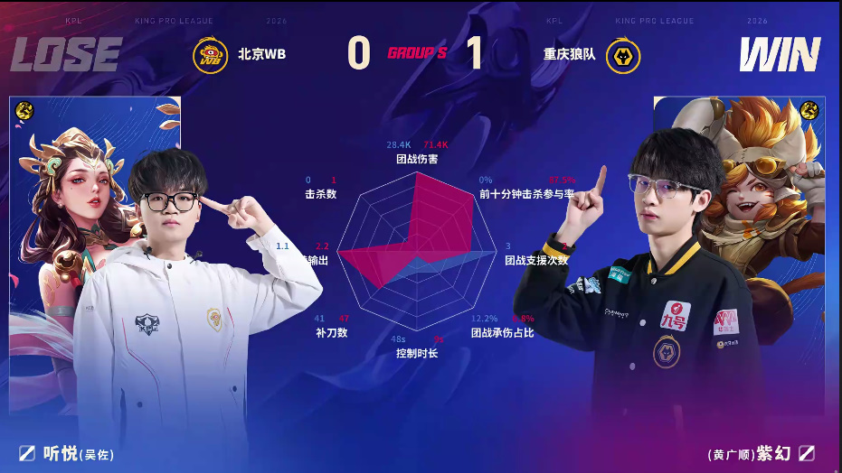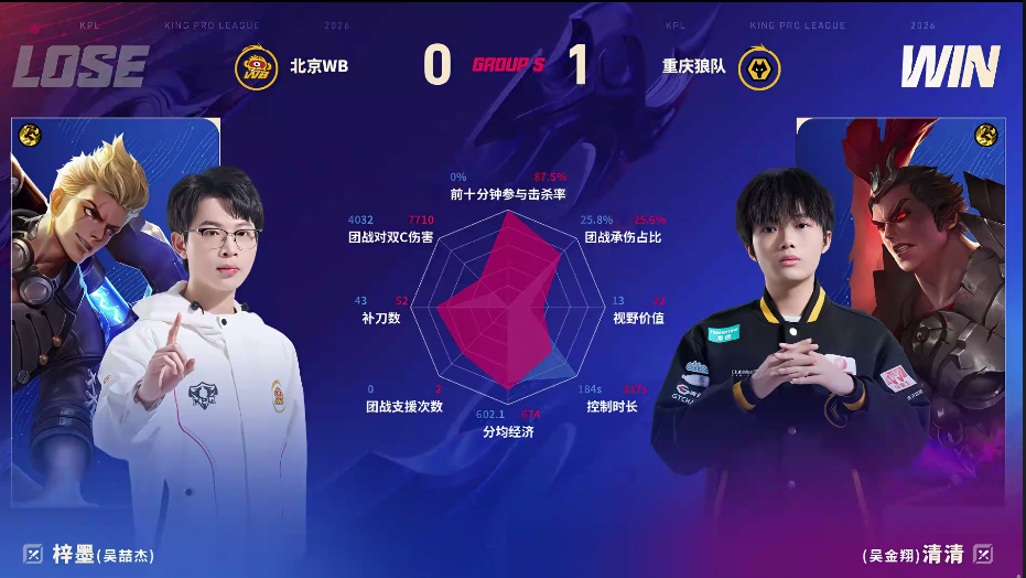 狼队/WB第一局数据图:皖皖裴擒虎全包围暖阳梦奇