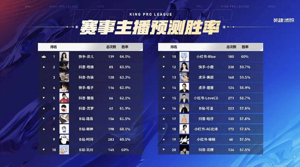 快手-灵儿胜率64.0%,位于排行榜第一。
