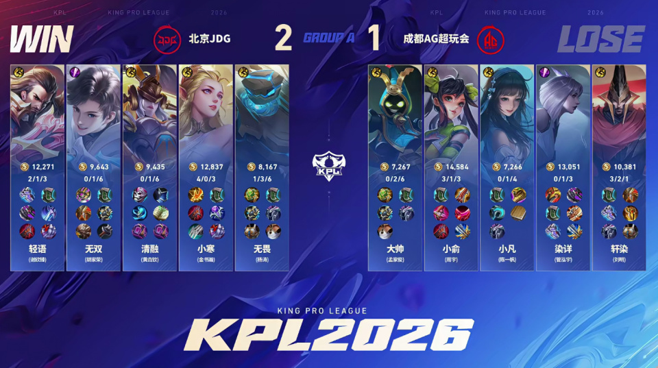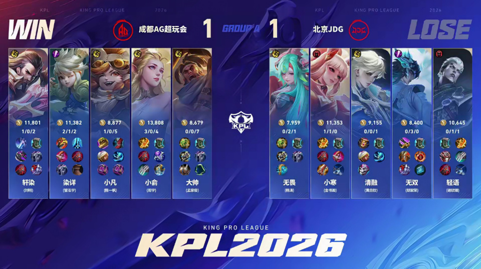 王又见王,辅助位最黑的蛋对上最帅的畏,两边的境遇已经不可同日而语,最终还是无畏更胜一筹,带领JDG3-2战胜AG,而且这是JDG队史首次战胜 AG,也是创造历史了。染详对位被无双爆了,钟意在台下是摇旗敲鼓样样行,但输了比赛意难平,还是抓紧回来训练吧。