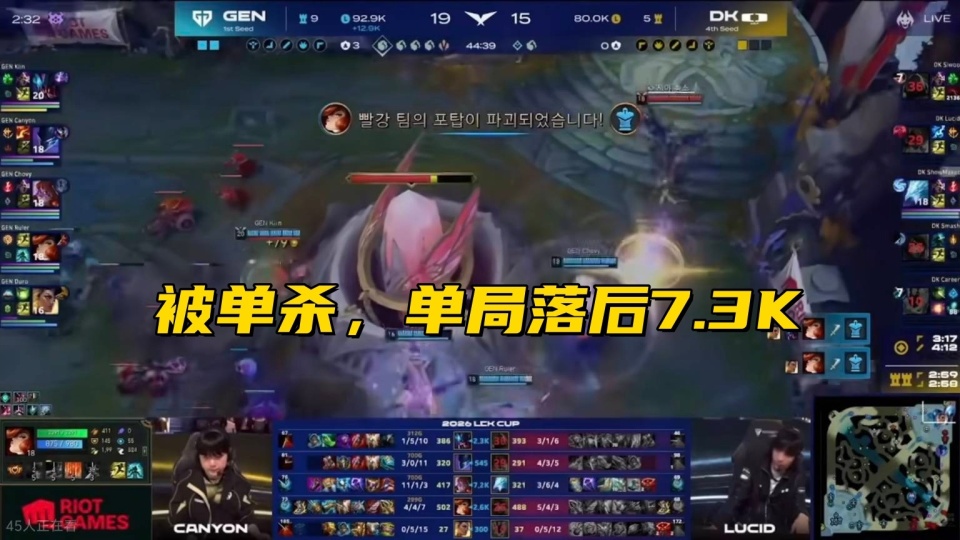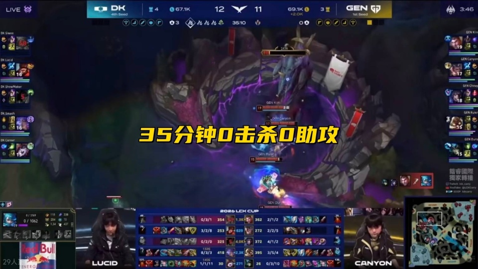 LCK冠军中单彻底区化!35分钟0击杀0助攻,单局对位落后7K经济