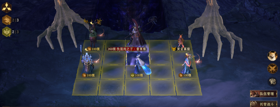 备战阶段,场上会存在一个特殊格子,处于格子中的队友会获得与伪混沌之子相同的增益和减益。战斗开始时,该格子中没有单位,则召唤1个混沌投影。