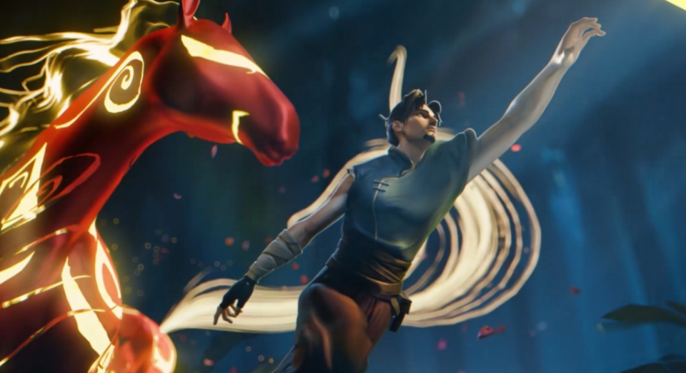 瓦手在CG动画里讲了一个很中国的故事:马年将至,人间被黑暗灾厄笼罩,老人的坐骑在混乱中失散。就在绝望之际,归来的却是一匹"不同寻常的马"——神驹现世,化作具有"迅捷"之力的武器,助英雄击退邪恶。
