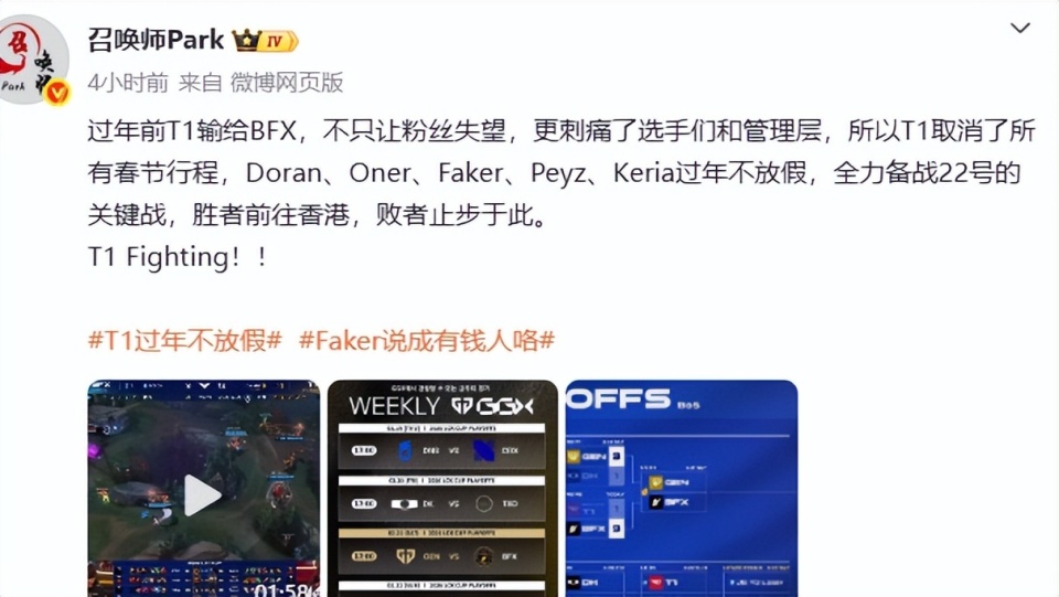 输了比赛之后,舆论给到T1的压力也是巨大的,只能说,确实太意外了,T1这段时间还没输过,一下子输了,粉丝们还不能接受,更何况输给BFX。