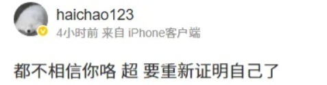 包括去年转会期的时候Haichao也发过一个争议性比较大的微博,内容大概是这样:都不相信你咯,超,要重新证明自己了。