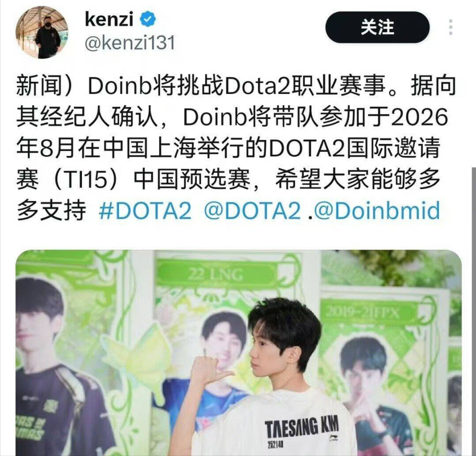 近期,Doinb的经纪人在个人社交账号上透露,Doinb除了想当DOTA2主播之外,还希望带领身边LOL好友一同参加DOTA2的TI15中国区预选赛。消息曝出后,许多LOL观众感到难以置信,毕竟Doinb在LOL领域已是世界冠军,若真转型为DOTA2职业选手,就意味着他将从零开始。不少粉丝也坦言,DOINB去参加比赛会丢脸,毕竟DOINB玩这款游戏仅半年不到的时间。