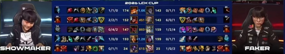 第四局Faker加里奥配合Oner的亚恒开始了惨无人道地针对中路行动,ShowMaker被连续针对,直接0-5开局,小镜头苦笑不止,打野也送了,所有人都以为比赛结束了,结果DK没有放弃,Lucid反而是劣势局控龙拿下听牌火龙。