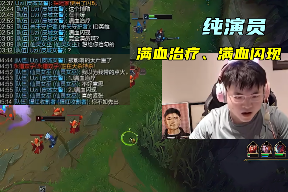 就这样,璐璐又满血交了个闪现,而对面打野千珏也是随之赶到,击杀了璐璐后,逼出了Uzi的闪现,令其只能残血塔下苟住吃点小兵。看到这一幕后,Uzi直接打字称辅助是演员,可谁知璐璐却做出解释,表示:闪现是为了给Uzi挡锤石的Q,治疗则是以为自己带的是引燃。除了这些以外,还声称自己排到Uzi太紧张了。看到这话后,乌兹也是当场无语,认为自己有闪、面前有小兵,锤石不可能勾中自己,还表示这种自己都举报不了,你一举报别人说自己紧张了、手抖了,拿他没有一点办法。