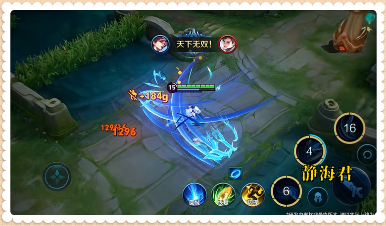 有一说一次,元刺的大招不光特效帅气,释放的距离还非常的远,在一技能的支撑下,差不多连续位移一个屏幕那么远(就类似兰陵王联系释放两次大招),一旦残血,很难逃脱元刺的追杀。