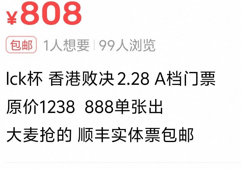昨天,DK在LCK杯败者组半决赛中让二追三击败T1晋级败者组决赛。今年的LCK杯后两场将在香港举行,在T1无缘香港赛后,二手市场上该项赛事的票价出现了断崖式的下跌。