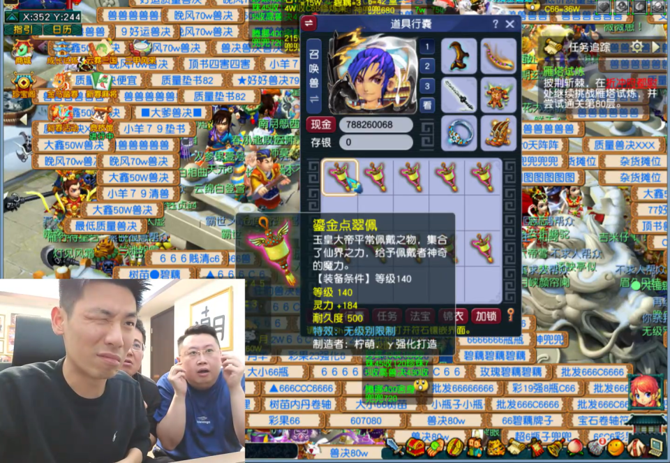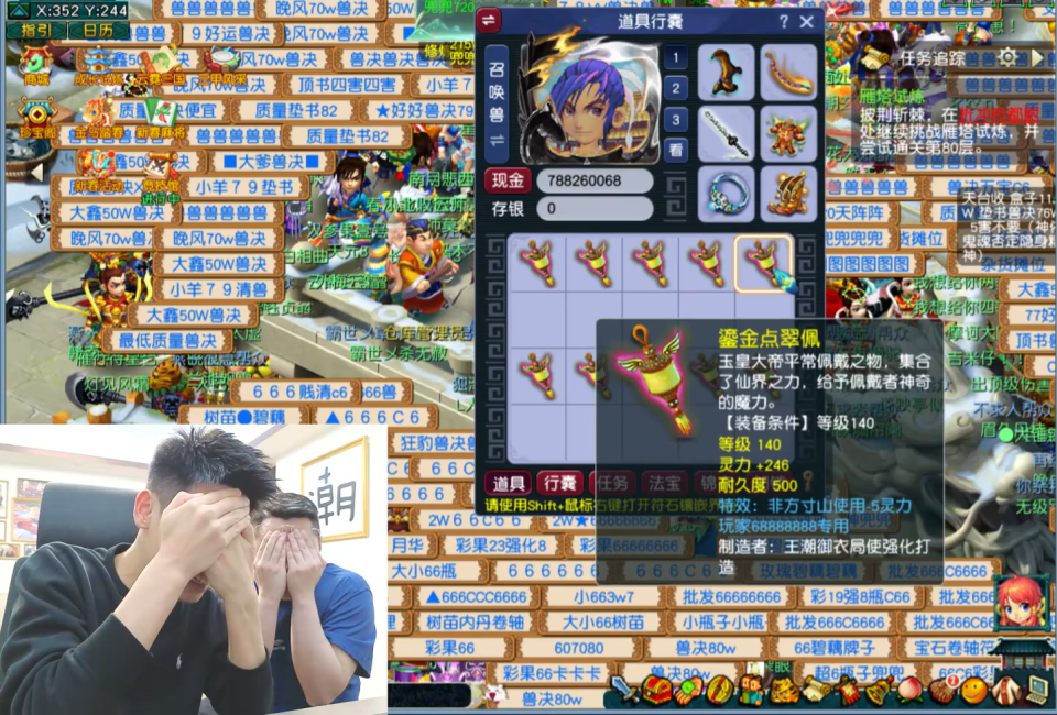 昨晚,旭旭宝宝帮助梦幻西游的两位好友“路大叔”与“毕总”鉴定了一大批140级装备。起初,“路大叔”先行开路,结果却基本拉胯。然而风水轮流转,轮到“毕总”时,好运突然降临,旭旭宝宝不仅炸出了“法系的梦想”这一稀有成就,更鉴定出了一件拥有X9顶端蓝字的无级别限制神装。接下来,就带大家一睹其真容。