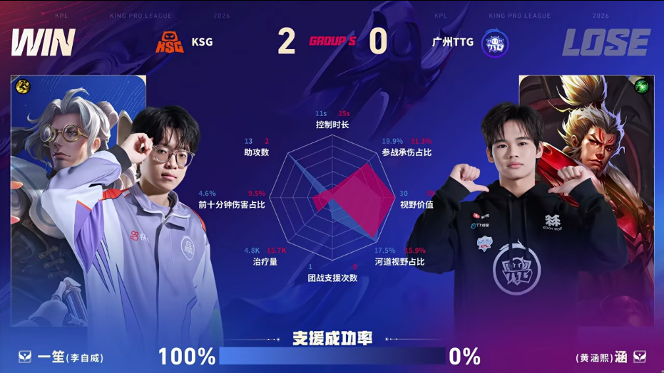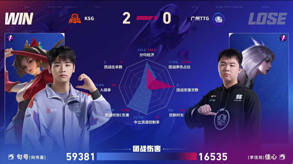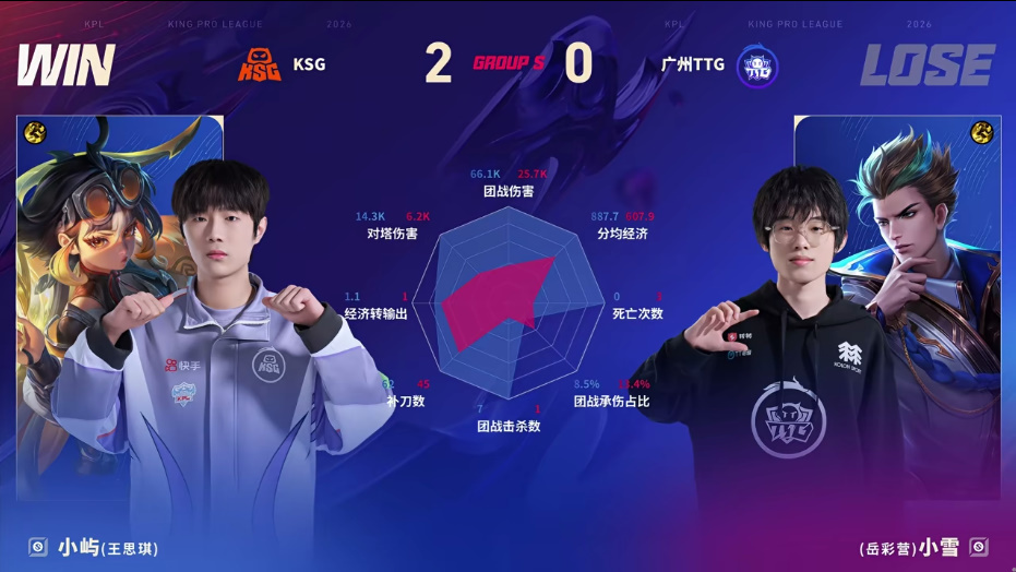 KSG/TTG第二局数据图:小屿蚩姹豪华数据多项拉满