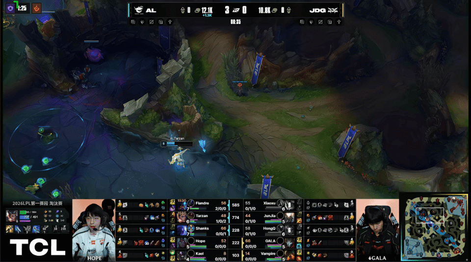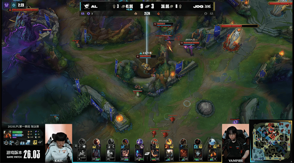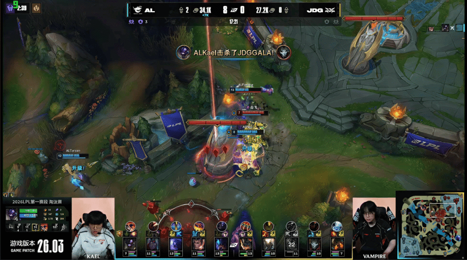 虎扑02月26日讯 GAME1:AL蓝色方;JDG红色方