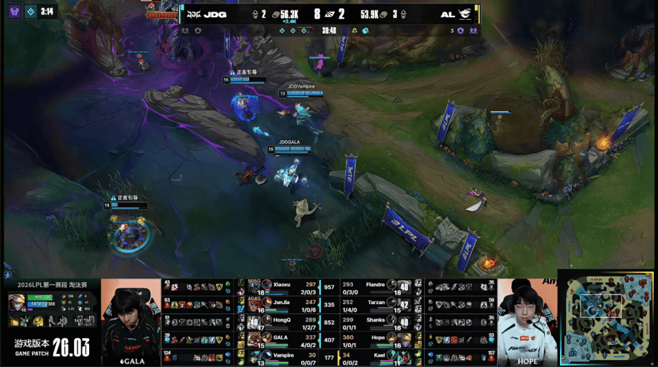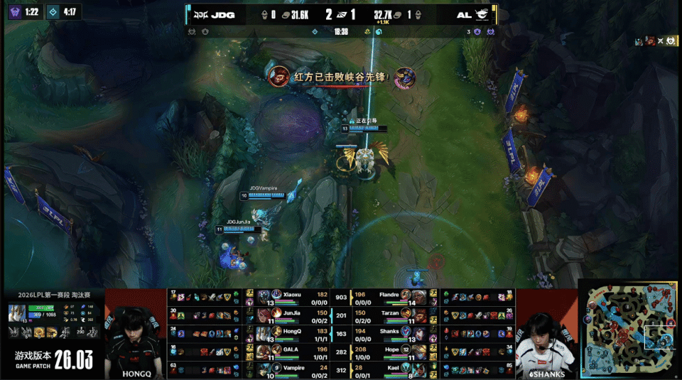 虎扑02月26日讯 GAME3:JDG蓝色方;AL红色方