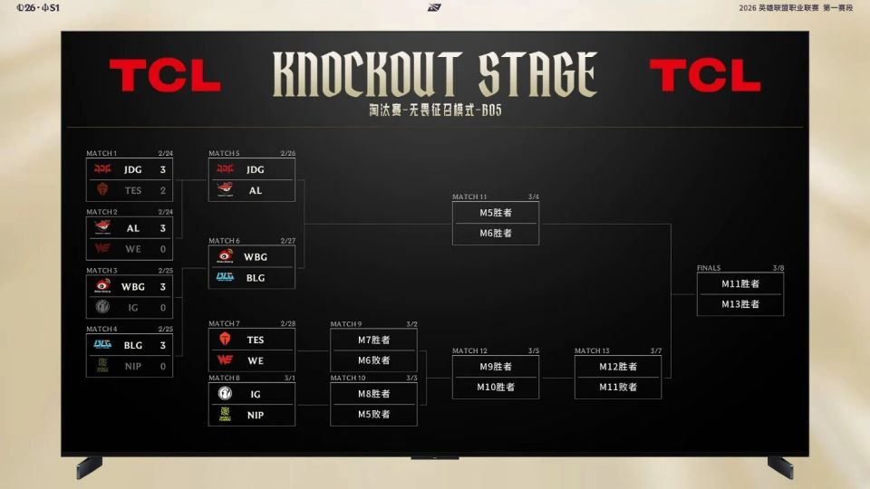 经过冗长的小组赛和卡位赛之后,8支战队进入了淘汰赛:JDG,TES,AL,WE,WBG,IG,BLG和NIP。他们要经过淘汰赛之后,决出第一赛段的冠军。特别提示一下,第一赛段的冠军有80点的积分哦。