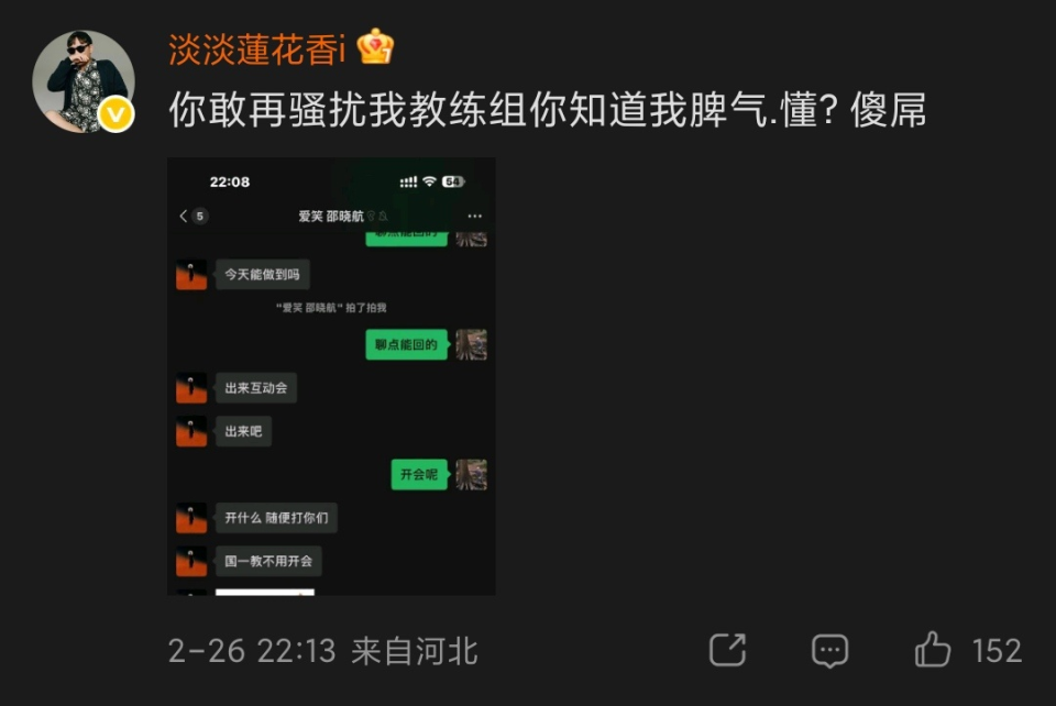 JDG老板疑似评论爱笑:敢再骚扰我教练组你知道我脾气,傻D