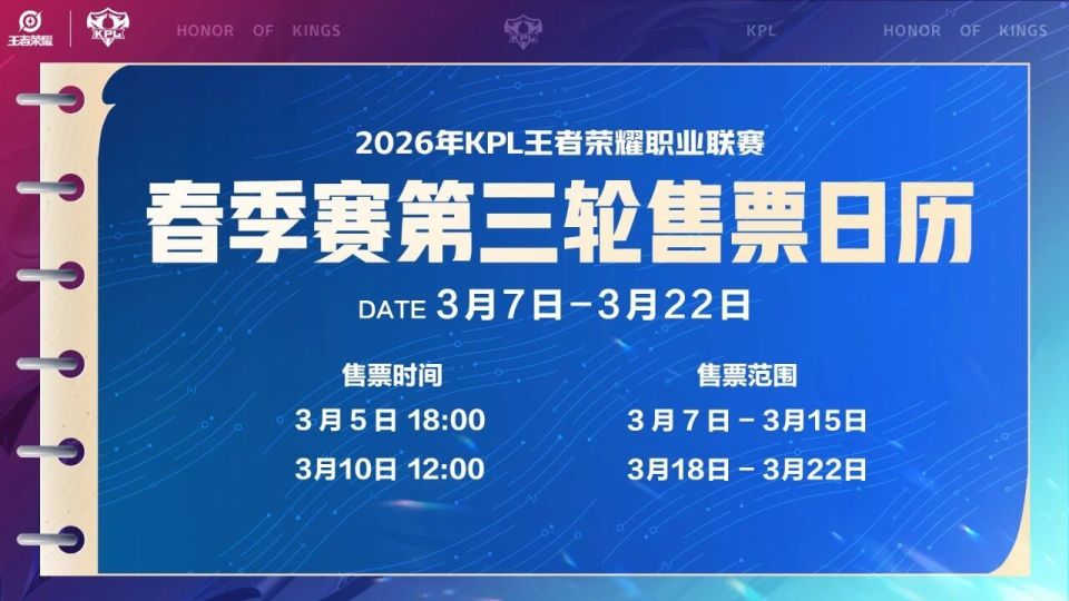 2026KPL春季赛常规赛第二轮卡位赛和常规赛第三轮线下售票日历出炉!