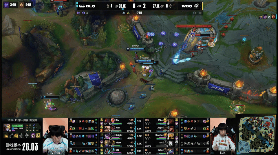 虎扑02月27日讯 GAME3:BLG蓝色方;WBG红色方