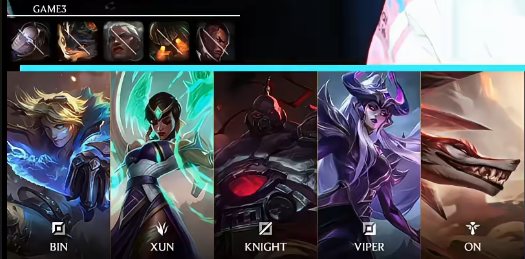 BLG选用:Bin塞恩;Xun纳亚菲利;Knight辛德拉;Viper伊泽瑞尔;ON卡尔玛