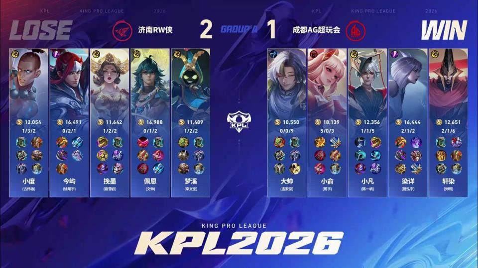 今天下午五点,济南RW对战成都AG,作为A组的“卧龙凤雏”(倒数第一第二),这场比赛的胜负其实并不是特别重要,毕竟前者RW已经锁定A/B卡位赛,而赛前的AG排在倒数第五,距离卡位赛也比较近。