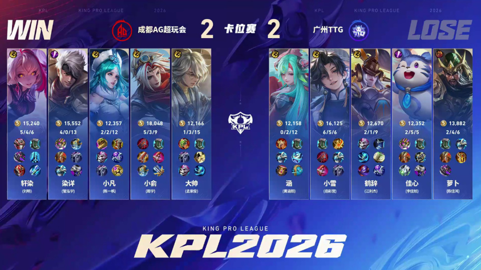 AG让二追四战胜TTG,成功挺进S组,可能很多粉丝都没敢想。大帅的状态仿佛回到了去年夏季赛,小俞的表现也非常稳定,而染详的一局韩信更是直接燃起来了。