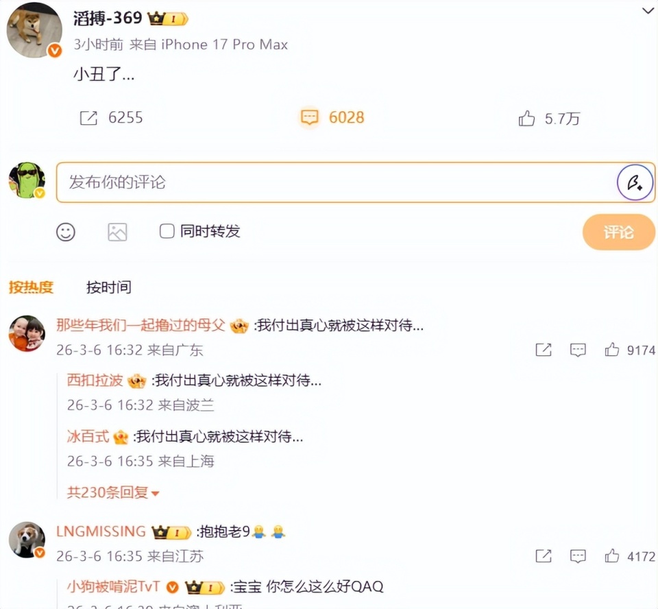 瞬间,369又被冲上了热搜,主要是真的错付了,还发声:小丑了。