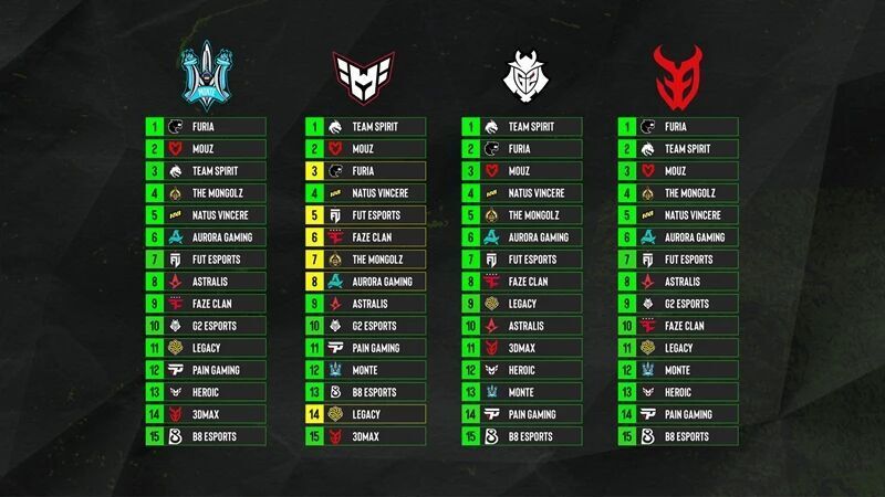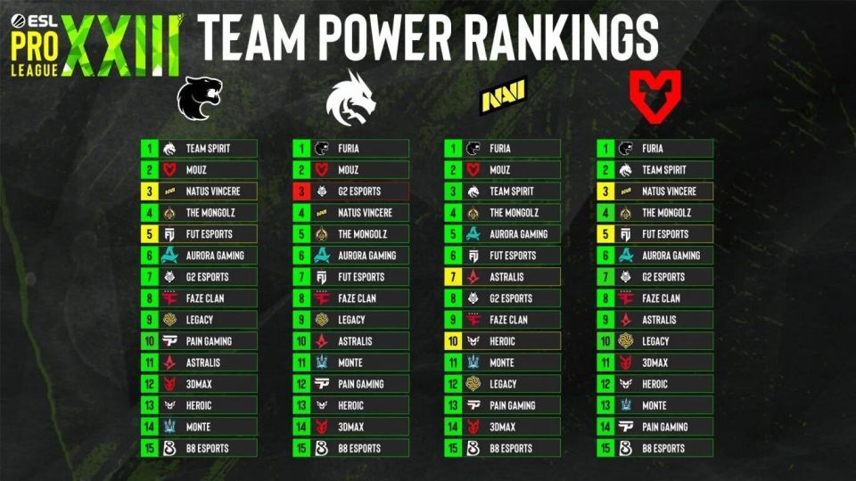 ESL公布EPL S23二阶段各个队伍相互排名