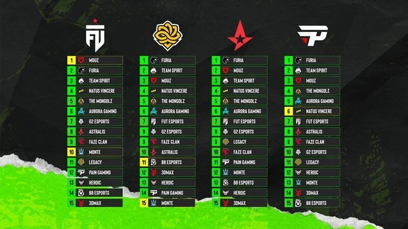 而EPL S23第二阶段开始前,ESL在官方推特上公布了各个队伍相互投票的种子排名结果,其中FURIA以1.31的平均排名成为EPL S23第二阶段的头号种子,Spirit以2.13的平均排名紧随其后。