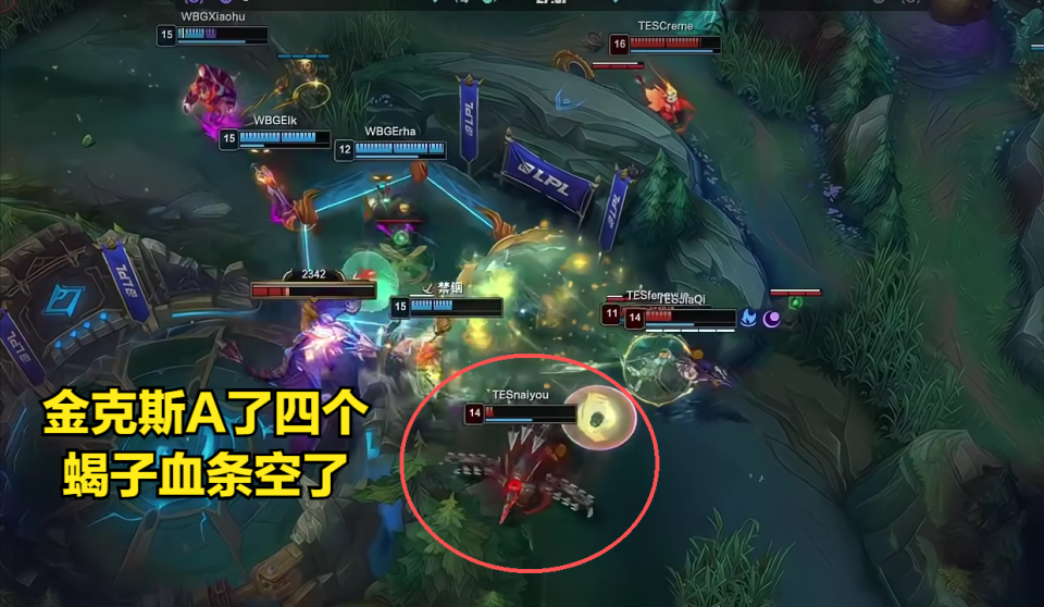 其实这一切都源自TES战队对战WBG战队的第五局,这一把TES战队中单选手Creme小火龙打出了7.1w的输出也没能赢下比赛,而其中最关键的就是在27分钟的团战中,这波蝎子被锤石勾中,金克斯A了四个+一个W技能直接把蝎子血条打空了,由于没有了前排,TES战队后续团战落败。这一波但凡蝎子出的是护甲生命值装备,多抗几下金克斯的输出,那么小火龙就有足够的输出空间,这波团战就有可能打赢,所以赛后Naiyou的出装也引发了热议。