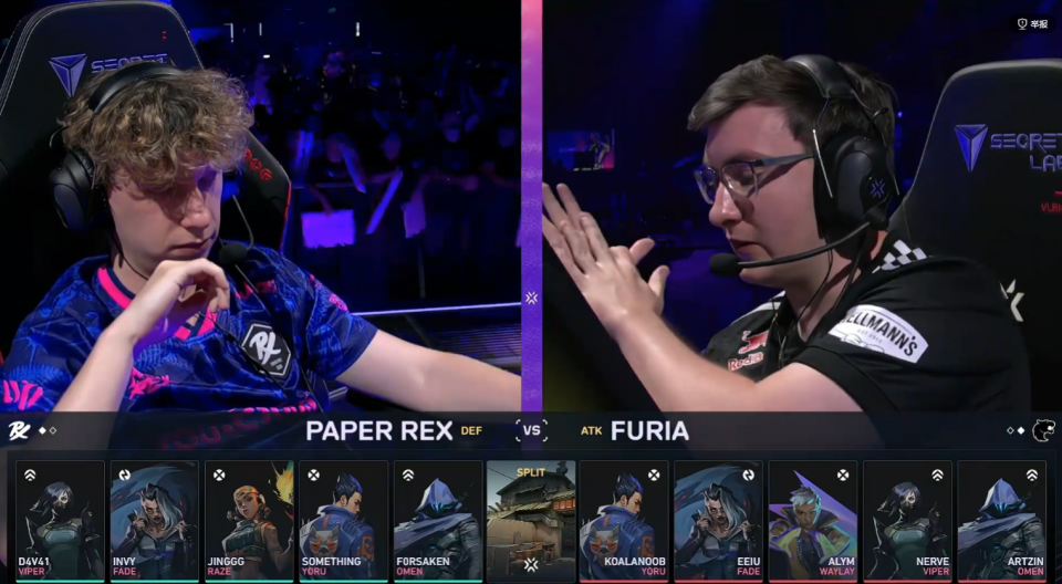 进入下半场PRX连下三分拿到赛点,FUR追回一分,但在第17回合FUR中路被打穿,PRX 13-4赢下图二。