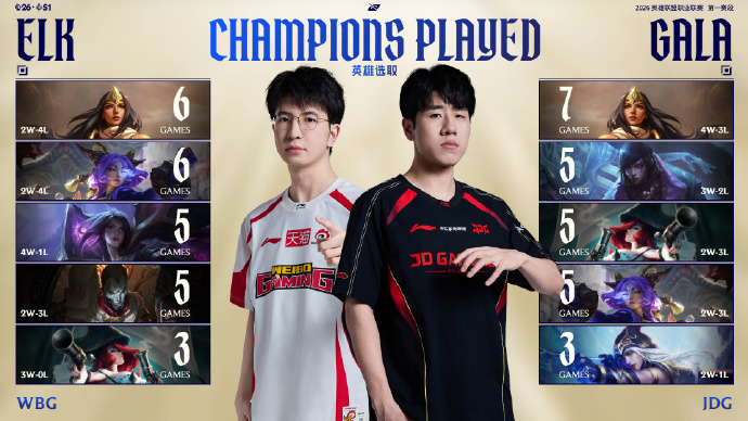 JDG对阵WBG赛前双方射手GALA与ELK数据对比及英雄选取一览