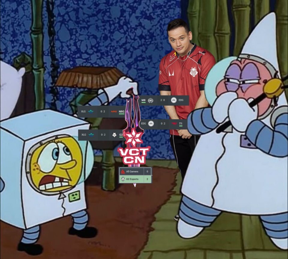 虎扑03月08日讯 G2用派大星难绷表情包调侃CN赛区在圣地亚哥大师赛的战绩:
