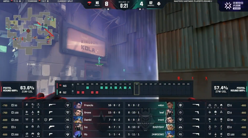 VCT大师赛:Dambi加时三杀一锤定音,NS让一追二战胜G2挺进胜决