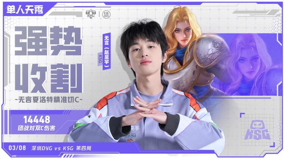 在电竞赛场中,选手越年轻,往往手法越强,我们将其称之为“青春风暴”,曾经的“风箫、钟意、决意”等选手在赛场上打出了不错的效果,而当时间来到本赛季,KSG的对抗路无言、发育路小屿等选手的表现都很不错,两名选手均凭借出色的局内数据拿到对应分路周最佳。