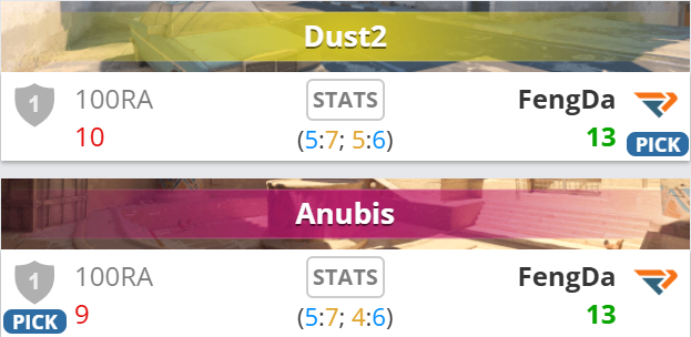 图二Anubis,FengDa丢掉手枪局1-4开局,随后Trash大开杀戒,p5p摸黑屋破点3杀,中国队一波6-1攻势结束半场。换边100RA再拿手枪局接连追至7平、8平,关键局Trash在B完成1V2残局并将对手打进经济局,FengDa乘势一波5-1钢铁防守终结比赛。