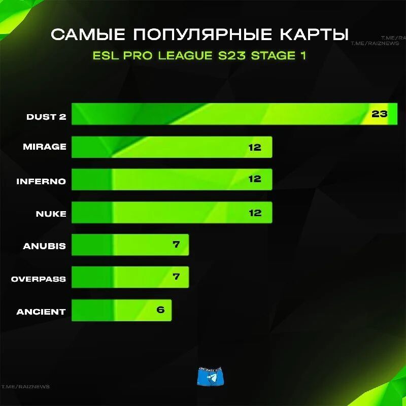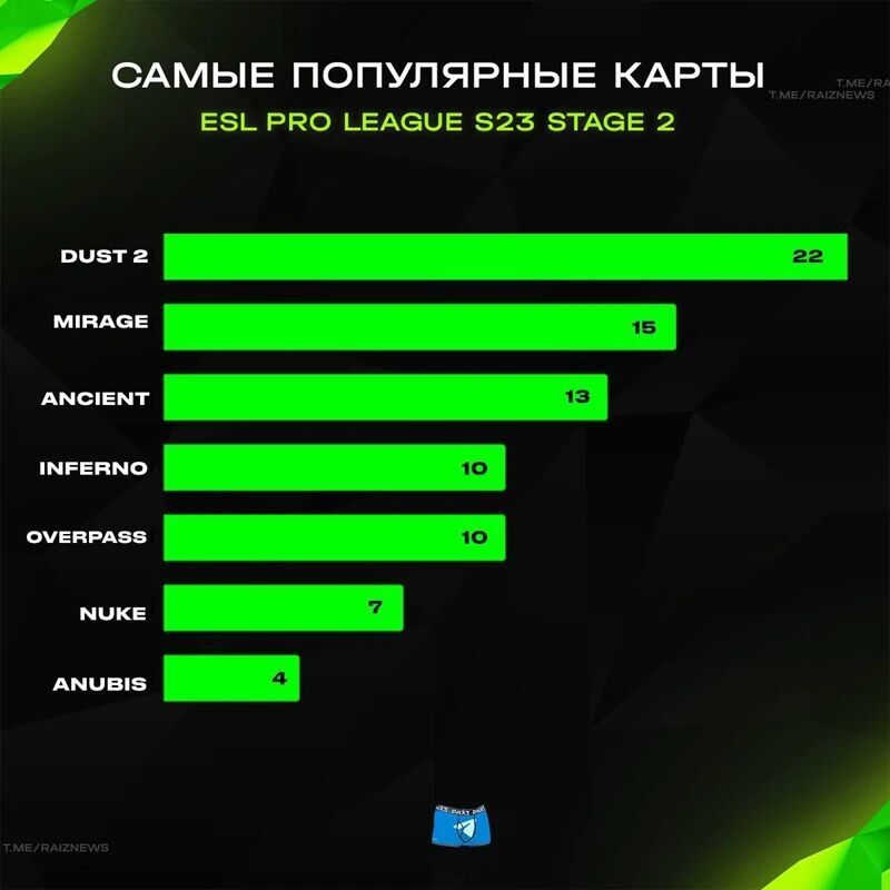 相较于第一阶段,Dust2和Mirage的位置依旧稳定。Inferno的第三名被选取数暴增的Ancient取代,Nuke的出场数也有一定减少。