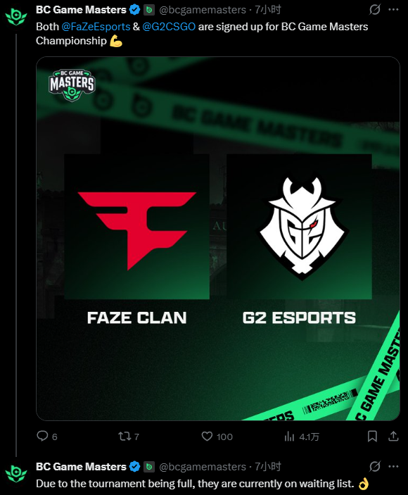 在昨日爆料FaZe已报名BCG大师赛S1以及DraculaN S6两个线下赛事后,BCG大师赛正式官宣FaZe、G2两队已经报名。