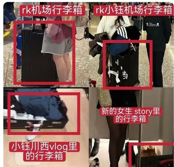 再来就是行李箱,据豆瓣侦探透露,行李箱是RIMOWA特别定制款,柄和轮子都是定制的,不是面向大众售卖的款式,Rookie和女网红有一样的行李箱也比较能说明问题。