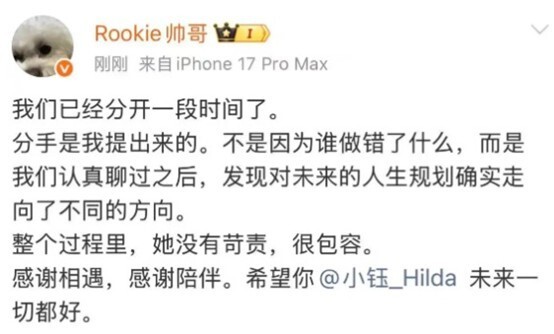 个人认为现在事件的关键点在于,如果Rookie真的是劈腿了,那么小钰是否知情,两人的分手是否是因为小钰知道了Rookie在韩国已经有了新的女朋友,还是说Rookie瞒着自己有新女友的事实,主动和小钰说的分手。