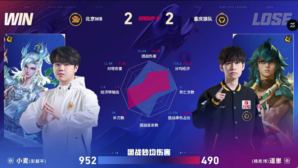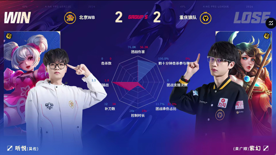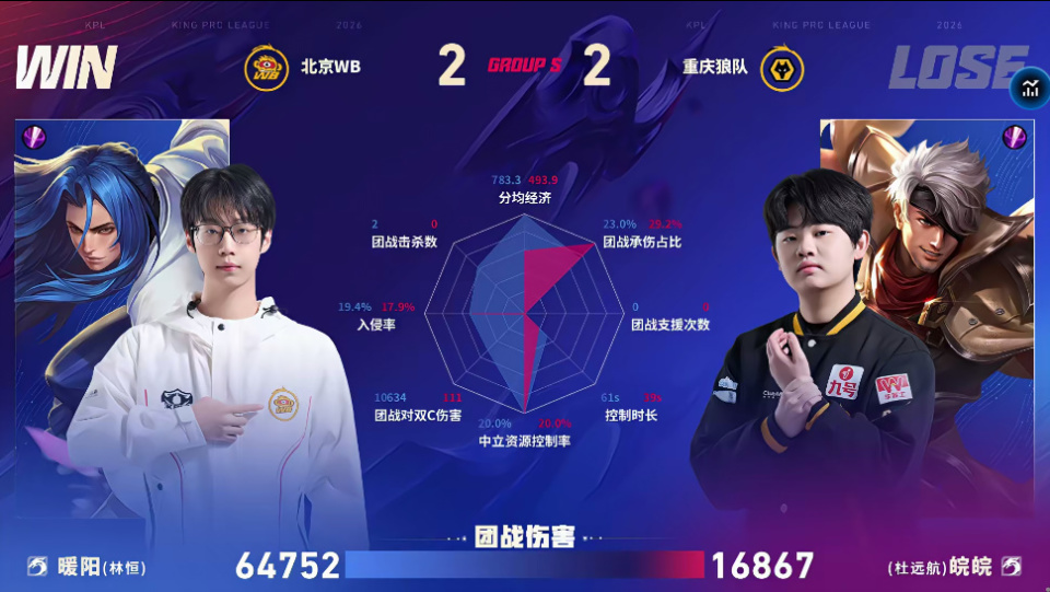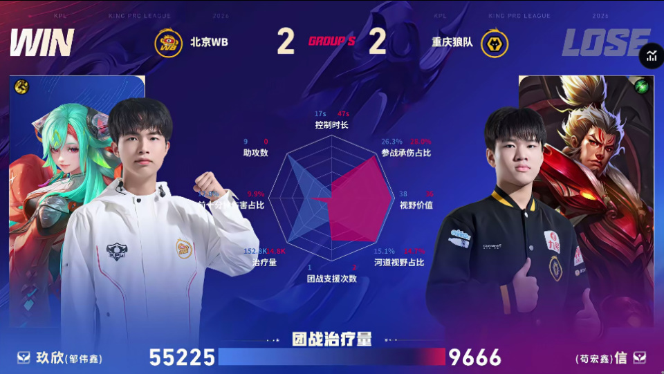 狼队/WB第四局数据对比:玖欣少司缘团战治疗量高达五万五