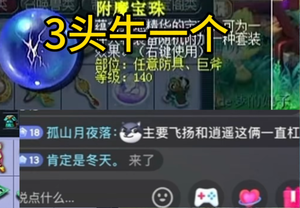 最近不少梦幻玩家都注意到,建邺城那件140级的附魔宝珠,价格直接飙到了三万元一颗!这可不是系统涨价,而是两位顶级神豪——飞扬哥和逍遥哥在暗中较劲。两人都想拿下“梦幻畅玩服第一物理系”的名号,于是铆足了劲给装备点化“满天套”,从衣服到鞋子,从武器到腰带,一个不落,誓要点出最强套装。两位老板竞争归竞争,能不能考虑下我宝哥?让我宝哥也掺和一脚?