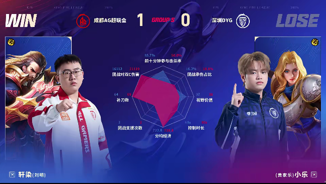 AG/DYG第一局数据对比:大帅赵怀真出奇制胜