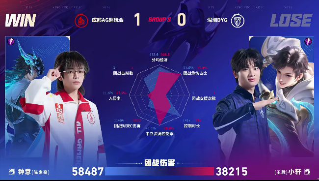 AG/DYG第三局数据对比:钟意入侵时长高达104S