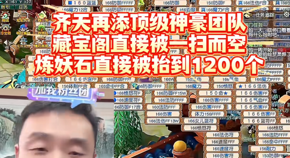 旭旭宝宝传媒的老段在直播中爆出猛料:齐天大圣服务器迎来了一支顶级神豪团队!据说珍宝阁上所有的140级书铁都被扫荡一空。从老段透露的细节来看,这应该是个团队而非个人所为——要知道,炼妖石的价格从450万一路收到700万都没停手,现在更是直接飙到了1200万!这种级别的扫货力度,绝对不是单枪匹马能做到的。
