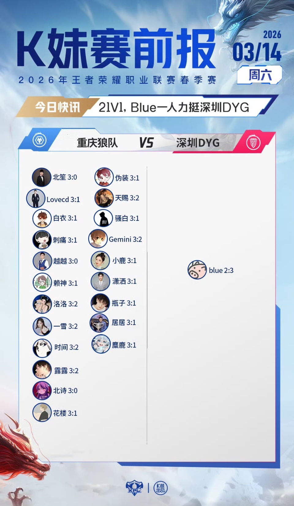 2026KPL春季赛常规赛第三轮W2D4【K妹赛前报】送达!