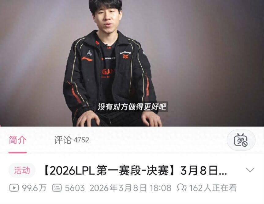 LPL第一赛段应该是LPL近几年,流量热度最低的一届比赛,毕竟LPL第一赛段因为积分太少,所以大量LPL明星选手,都选择在第一赛段休息。其中就包括辅助Meiko、下路JKL和hang、打野小天以及上单TheShy等。去年TheShy还打比赛的时候,IG每场比赛的播放量都能轻松超越200万,而如今BLG跟JDG的第一赛段决赛录像的播放量仅为99万。