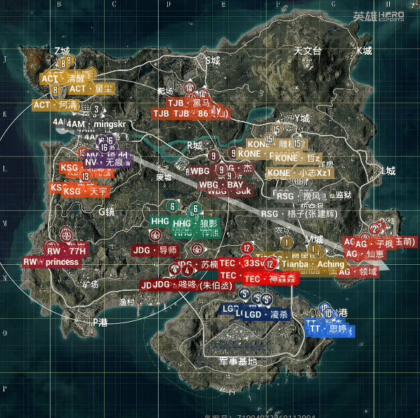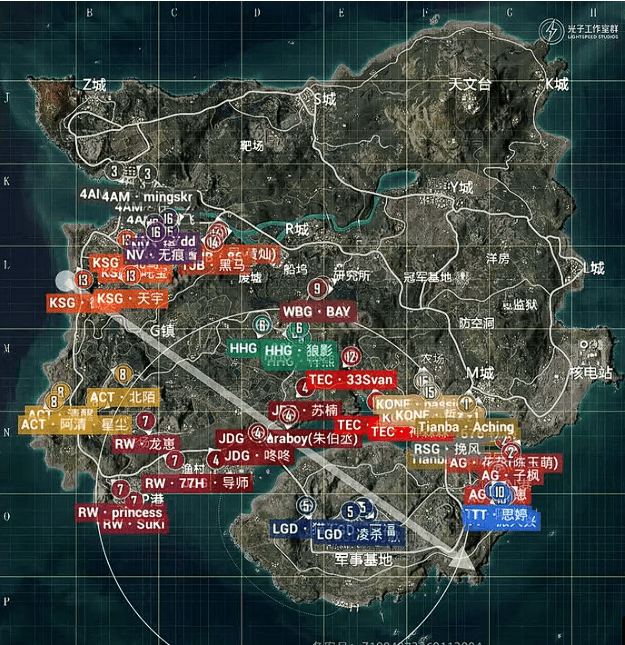决胜时刻,信号圈缩在军事基地附近,圈内剩余杭州LGD战队、北京JDG战队和无锡KONE战队,此时场上4v3v3。LGD战队与KONE战队率先开战,一波人员互换后,KONE战队先被淘汰出局,随后剩余两队展开对战,LGD战队阿福精准出枪淘汰JDG战队最后一人拿下比赛,LGD再吃一鸡。