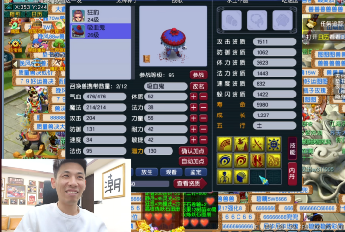 第一手操作,他买了一只8技能的力劈吸血鬼,跟自己的10技能狂豹合体炼妖。